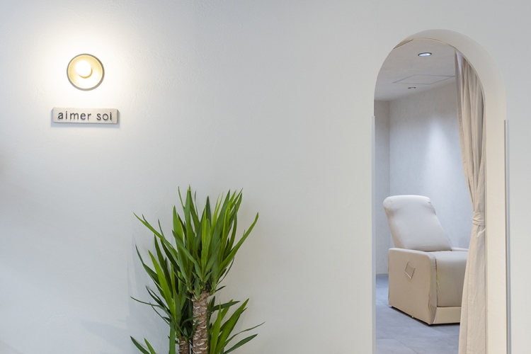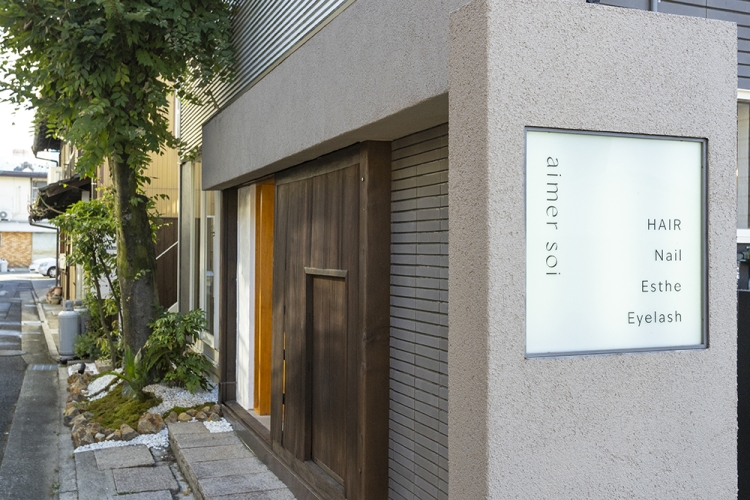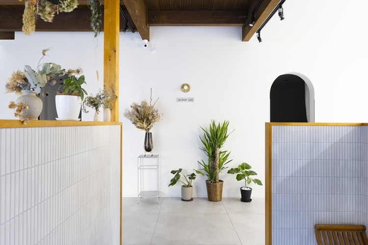 Design concept フランス語で「aimer」( エメ 愛する )、「soi」( ソワ 私 ) 「自分を愛する」という意味として名付け。 地元(多治見)のタイルも多く利用し、 元の古い素材を生かし素敵な空間として生まれ変わりました。 日々忙しく生活する女性が自分のためだけの時間を過ごす そんなトータルビューティーサロンになるために...。